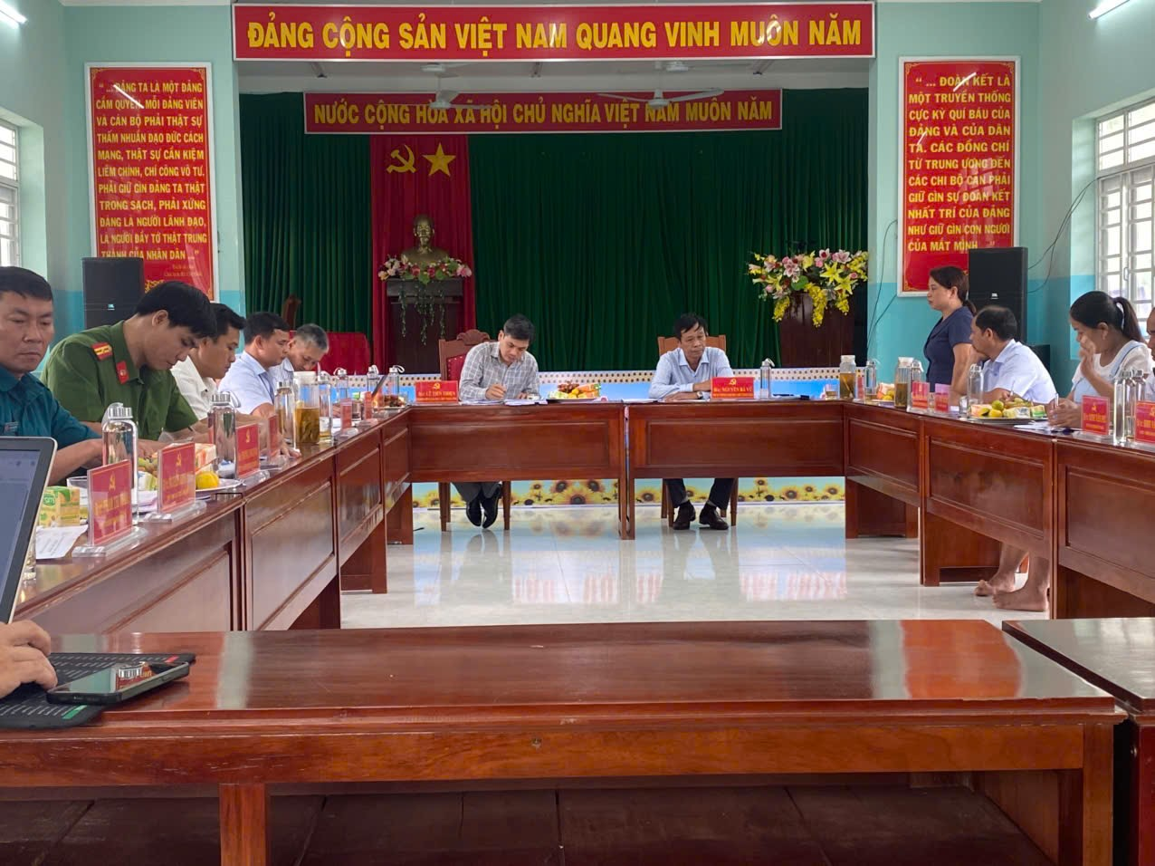 Tiếp và làm việc với đoàn có các đồng chí: đ/c Đinh Thị Diệu - Bí thư Đảng ủy, Chủ tịch HĐND xã; đ/c Trịnh Hồng Vinh - Phó Bí thư Thường trực Đảng ủy; đ/c Đinh Văn Cung - Phó Bí thư, Chủ tịch UBND xã; đ/c Đinh Văn Phú – UVBTV, Chủ tịch Ủy ban MTTQ Việt Nam xã; các đ/c Ủy viên Ban Thường vụ Đảng ủy, Lãnh đạo UBND xã, Trưởng các Phòng: Kinh tế, VH – XH, Văn phòng HĐND & UBND xã, Giám đốc Trung tâm Phục vụ Hành chính công xã.